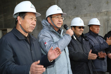 省“引大濟湟”工程建設協調領導小組辦公室、省水利廳、青海水電集團、青海引大濟湟水電建設有限公司領導,以及青海省水利水電工程局、中國水電十五工程局一公司等參建單位主要負責同志和廣大建設者,昨天在現場共同見證了導游洞下閘過程。